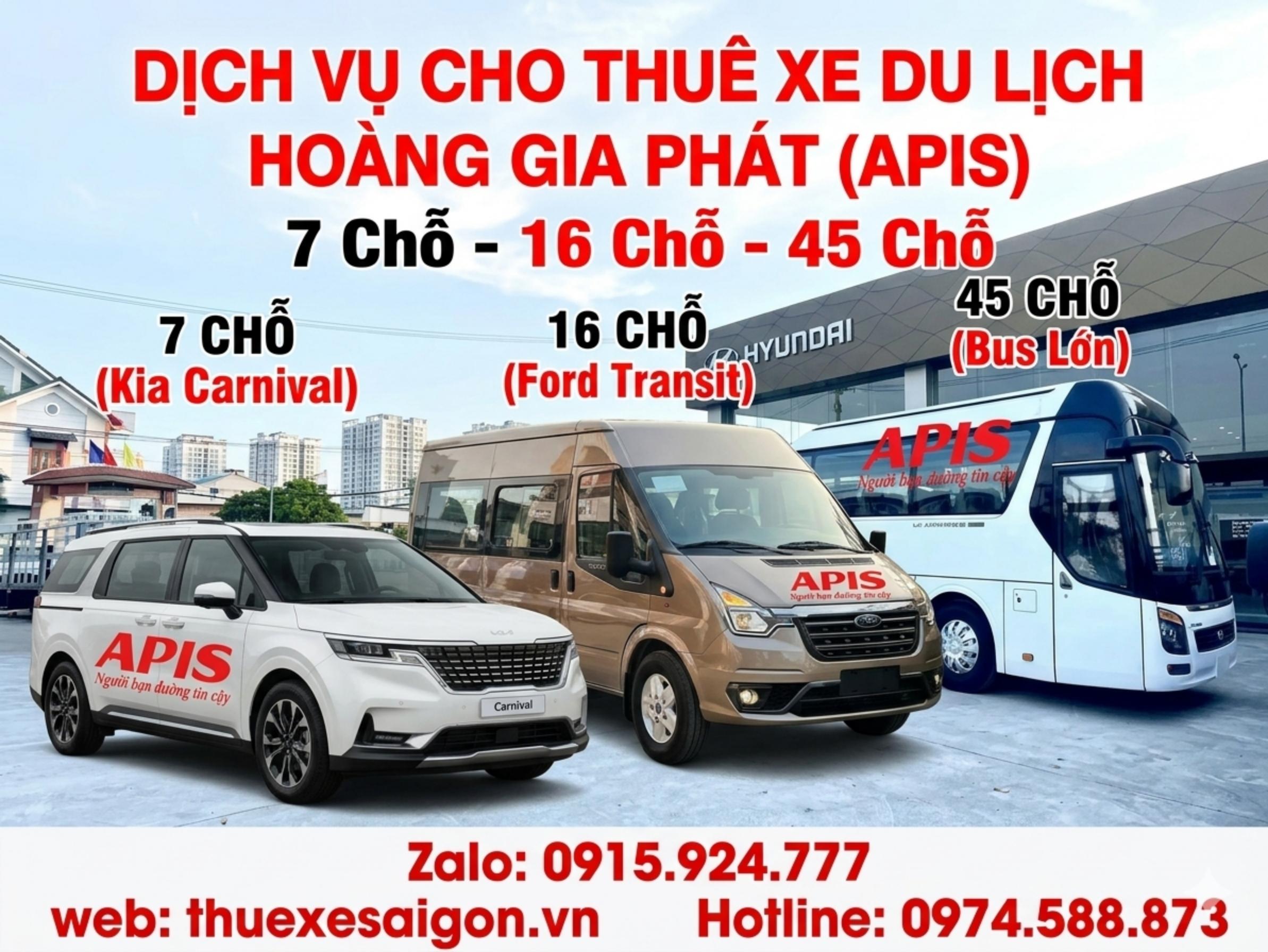Bạn đang tìm kiếm dịch vụ cho thuê xe du lịch tại TPHCM uy tín để phục vụ nhu cầu tham quan, cưới hỏi hay công tác? Hoàng Gia Phát (APIS) tự hào là đơn vị hàng đầu cung cấp giải pháp di chuyển an toàn, sang trọng với chi phí tối ưu nhất hiện nay.